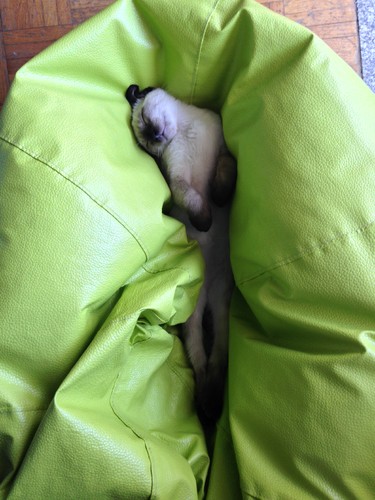 Este é o Sheldon, tem 3 meses e é filho da Adelaide. Foi ficando e já não sai de cá. Adora o Surdinho e dão-se muito bem ;) Adora estar no puff a dormir, como podem comprovar nas fotos seguintes: