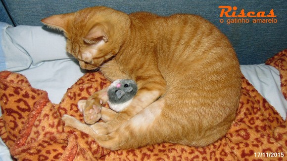 Ao ler o post da Marta sobre gatos que gostam de peluches, resolvi, pegar em algumas fotos que tenho do Riscas com peluches e mostrar ao Clube de Gatos do Sapo e ao mundo!