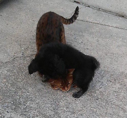 Esta cachorrinha que falo, vive com um gato. Ela tem cerca de 3 meses e o gato tem 5 anos. Ela só quer é brincar e o gato só quer é paz e descanso! É uma diversão vê-los juntos, o gato a esconder-se dela e ela a encontrá-lo e a querer brincar!