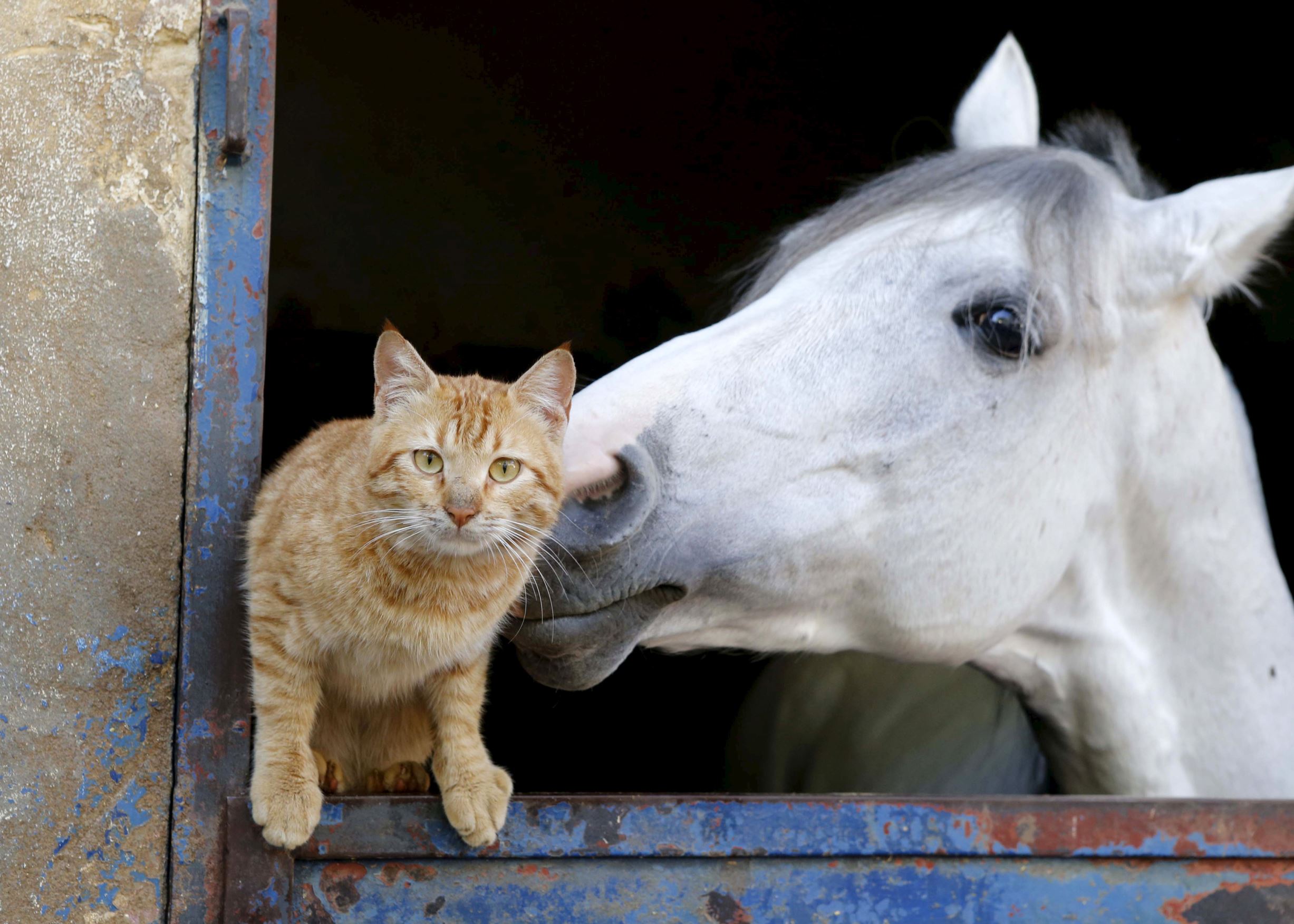 Um "beijinho" ou "cheirinho" de cavalo ao seu amigo gato.