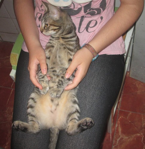 A Becas, preocupada, vai ter com ela, tenta fazer-lhe uma festinha mas a Amora volta a miar e espanta-a. Tento acalmá-la e tirá-la lá de baixo. Pego nela, ela volta a miar, como se se estivesse a queixar com dores, mas fica no meu colo, muito quieta.